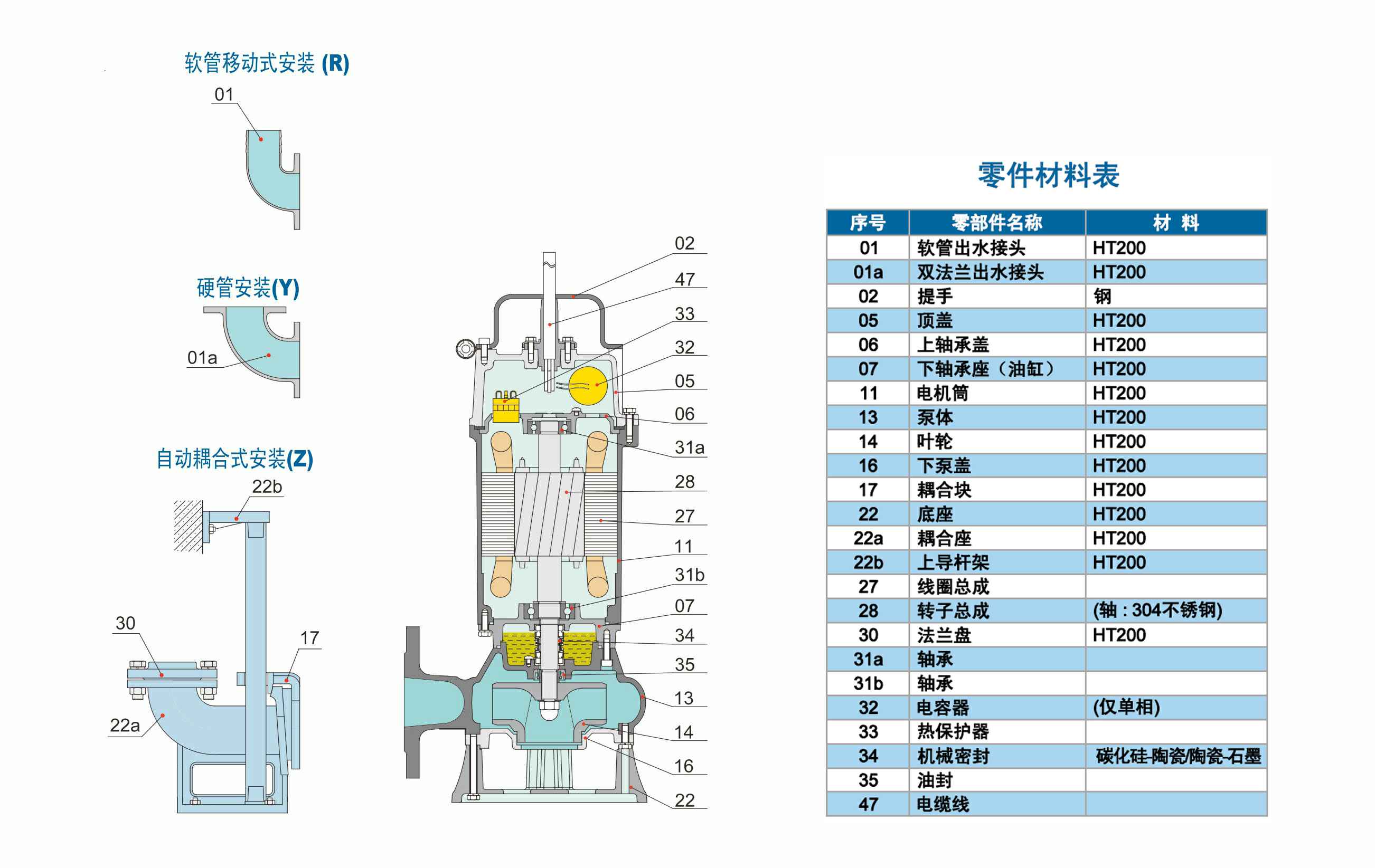 WQ系列双流道潜水排污泵结合了国内外同类优秀产品,经过PCAD软件优化设计而成,在水力模型、结构、密封、冷却和保护控制等方面进行了综合优化和创新设计。叶轮为双流道设计,有较大的进口和出口宽度,无堵塞性能好,高效节能,安全可靠,寿命长。